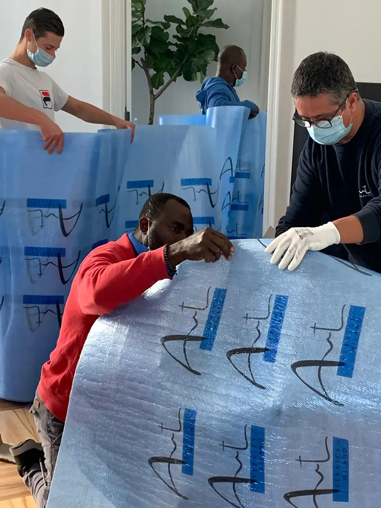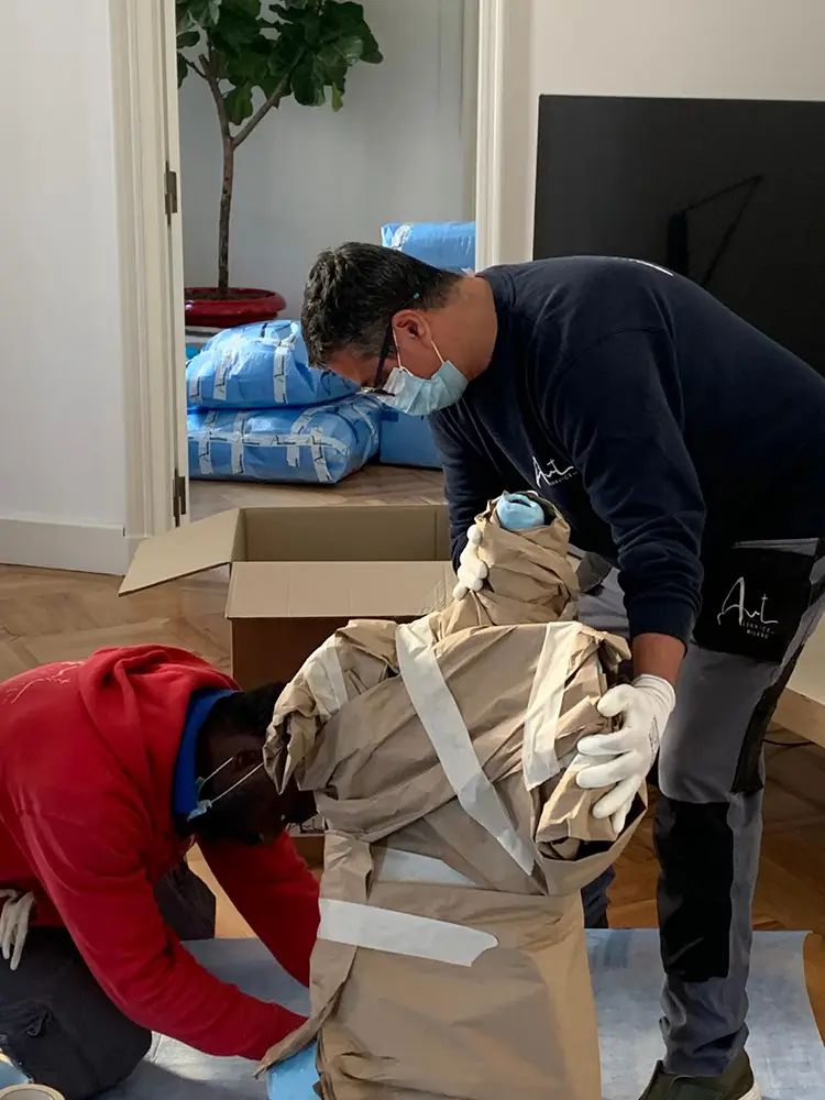 Nel momento in cui diversi manufatti affidati a noi devono essere inviati ad uno stesso Paese, ottimizziamo la spedizione utilizzando questa procedura: dopo averli raggruppati, li imballiamo con attenzione e li facciamo arrivare a destinazione attraverso un’unica operazione di trasporto.